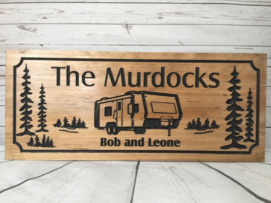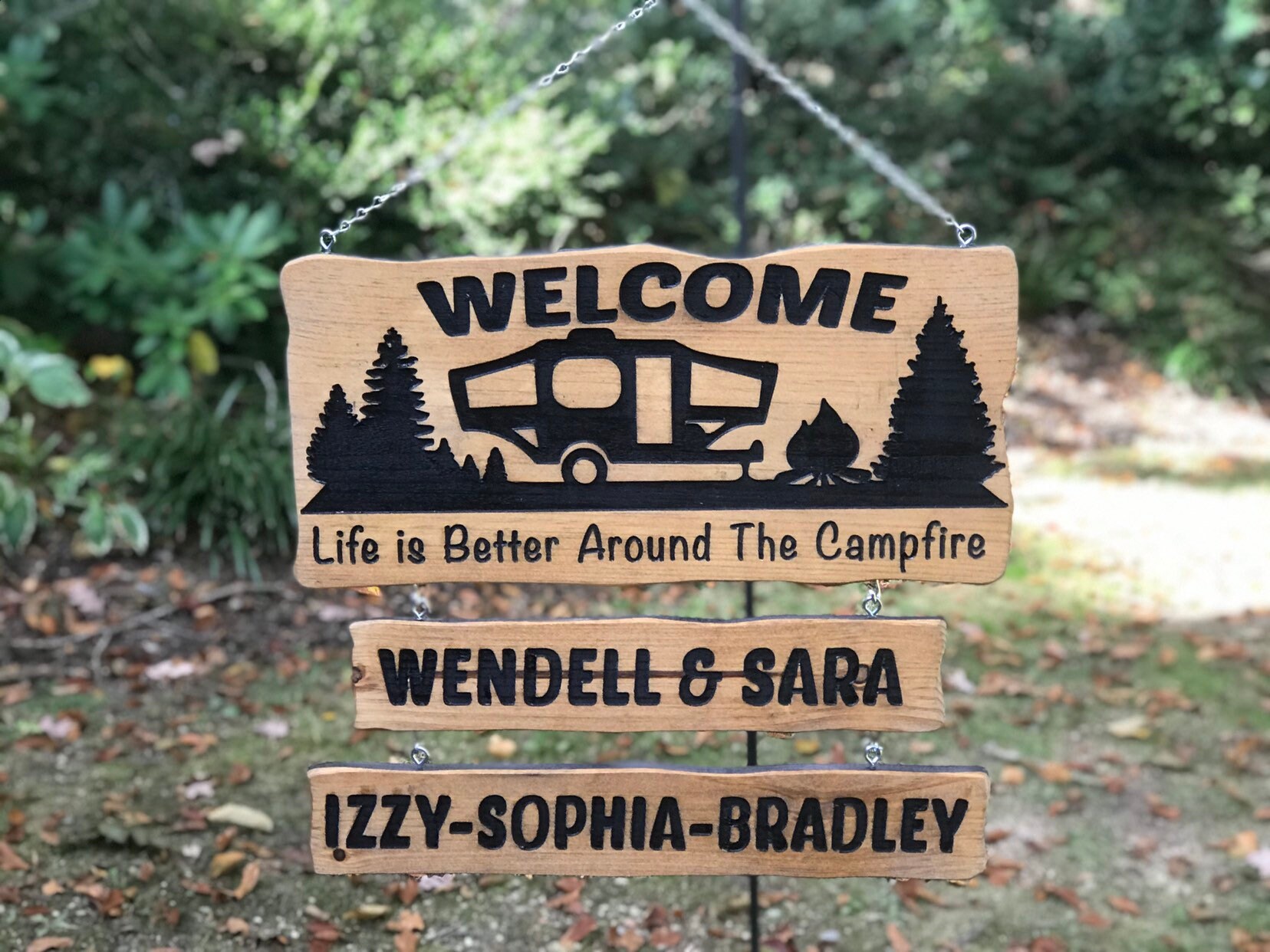 Wood Carved Camper Sign 7 Pattern Choices Personalized Signs Camping Sign Outdoor Sign Aj Wood Products Custom Carved Signs More